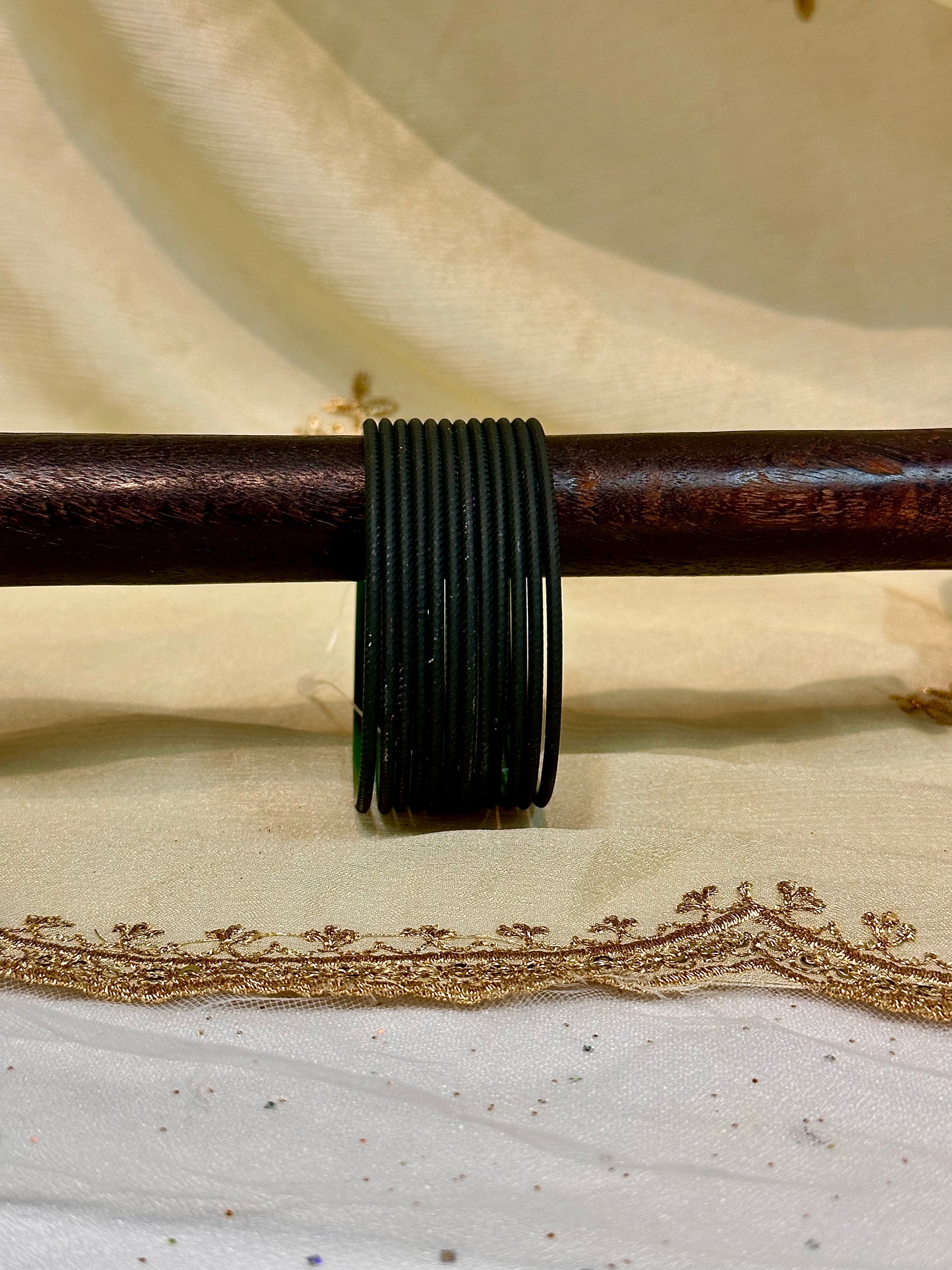 Embellishments: Dark green plain velvet bangles