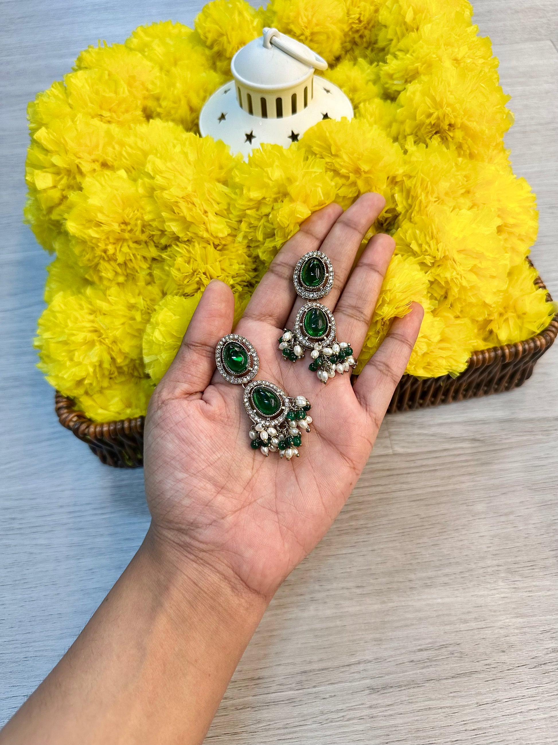 Embellishments: Emerald beads, off-white mini beads and AD stones on molten brown metal material