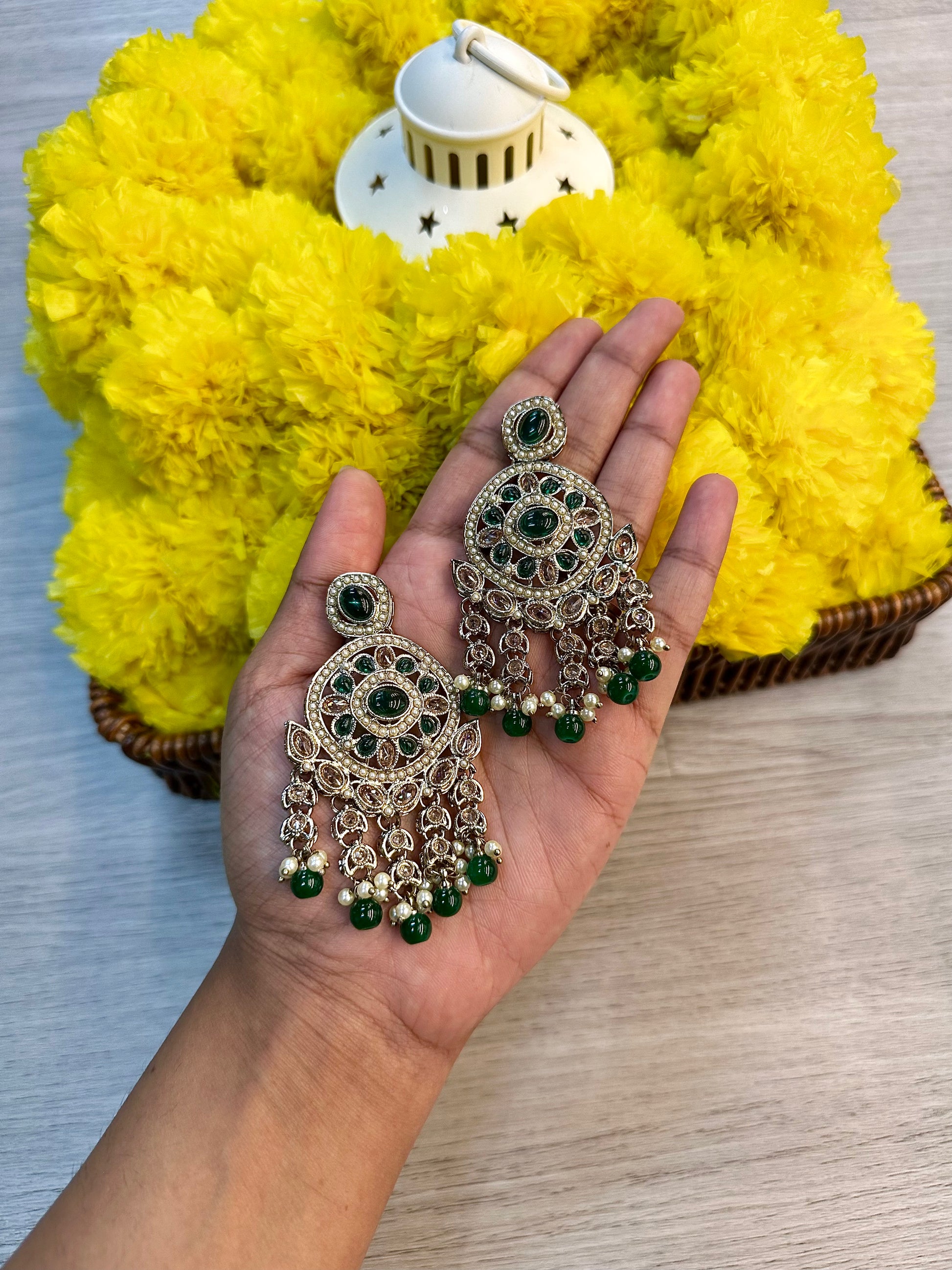 Embellishments: Emerald beads, off-white mini beads and original mehandi polished stones on molten brown metal material