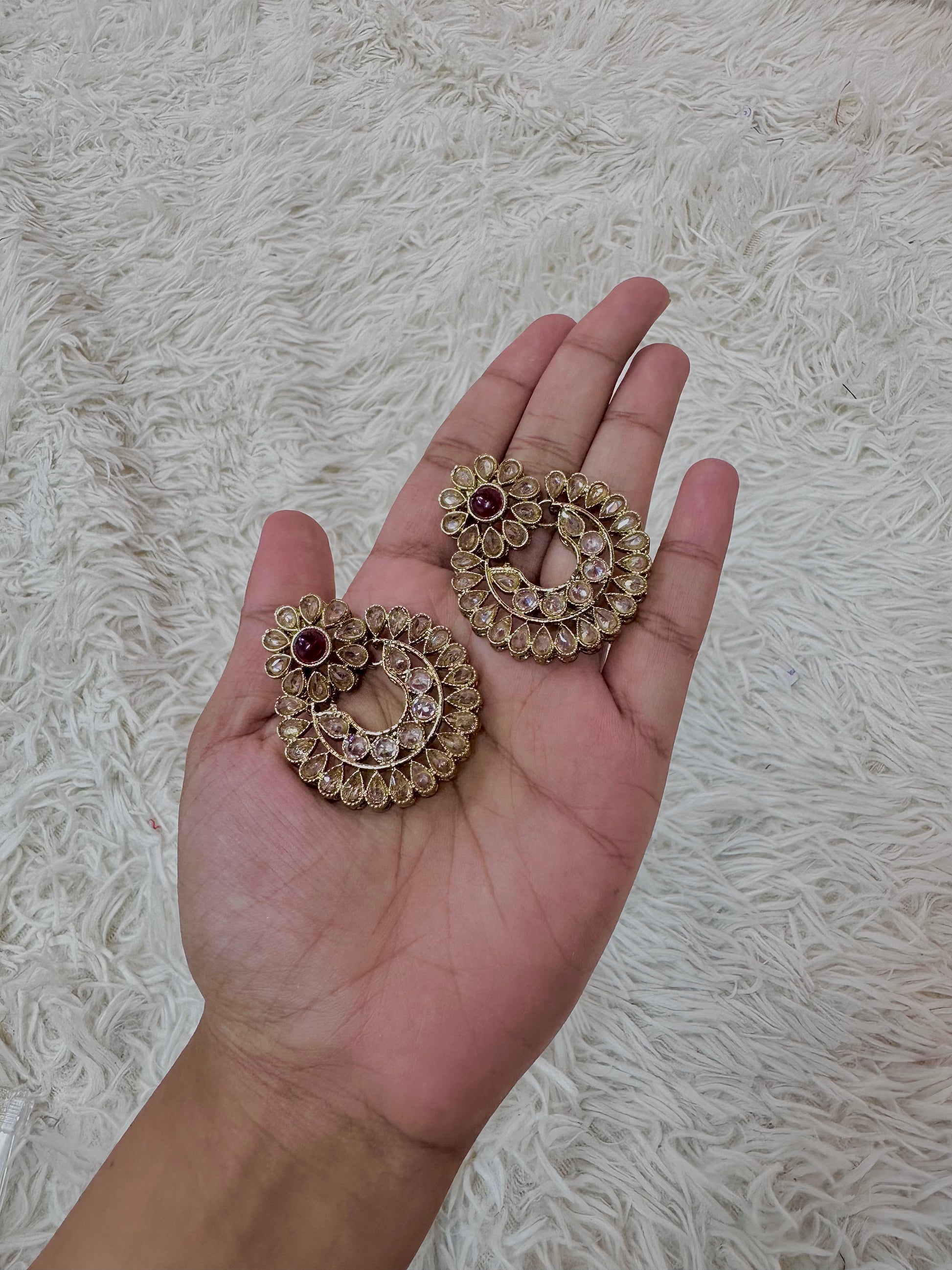 Embellishments: Red and original mehandi polished stones on molten brown metal material