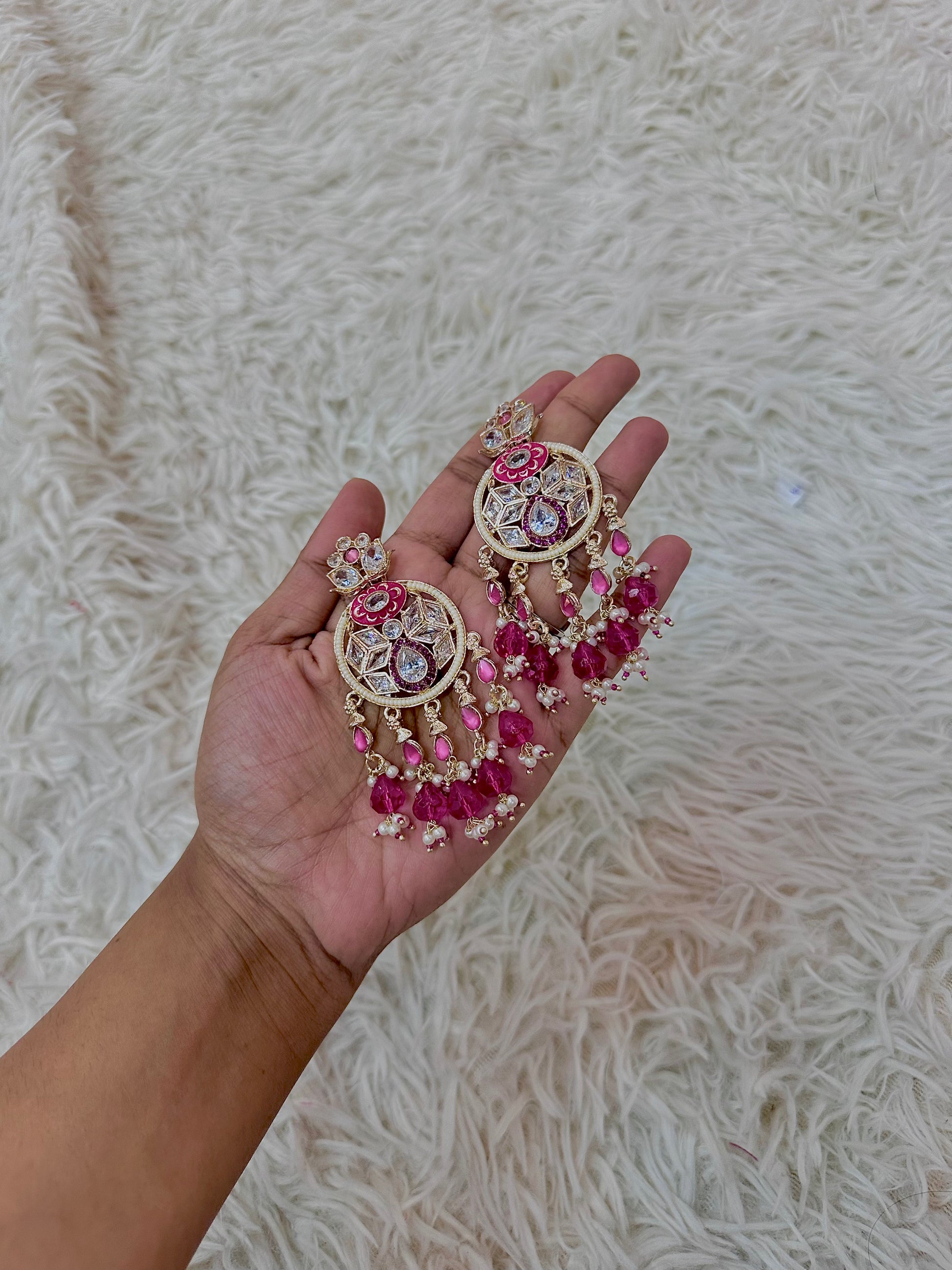 Embellishments: Hot pink crystal beads, off-white mini beads and original white stones on molten rosegold metal material