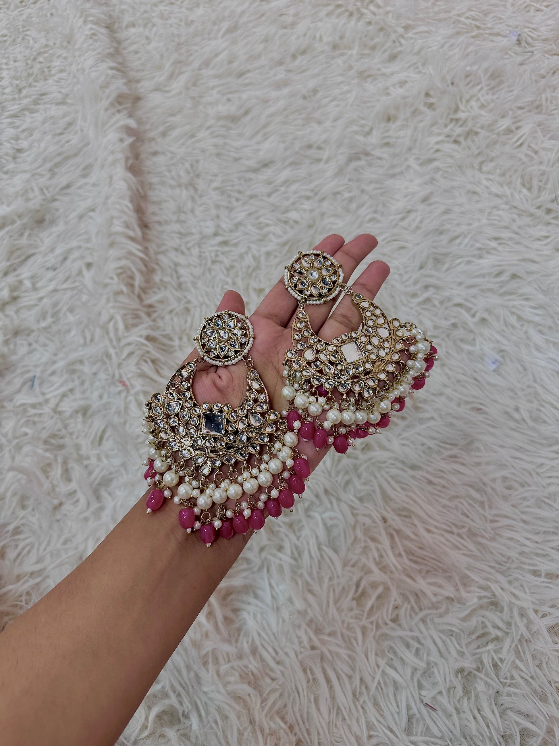 Embellishments: Hot pink pebble beads, white and off-white mini beads and plastic kundan stones on molten brown metal material
