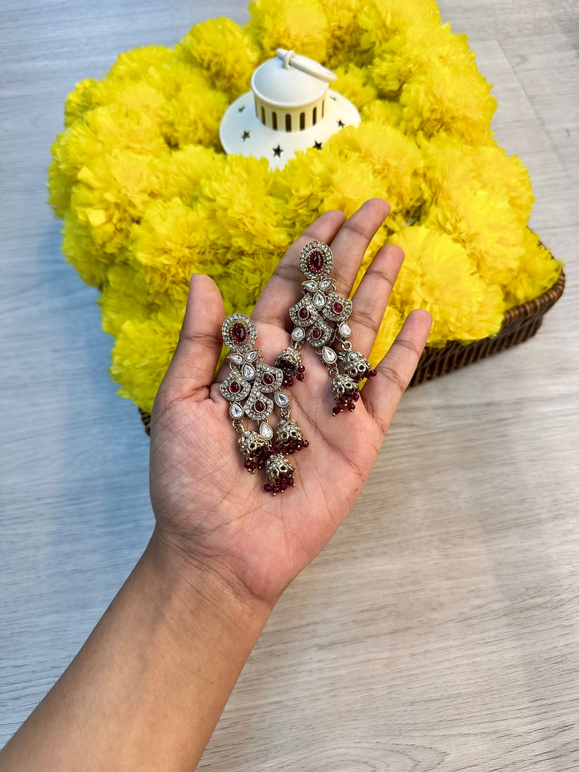 Embellishments: Maroon beads, off-white mini beads and AD stones on molten brown metal material