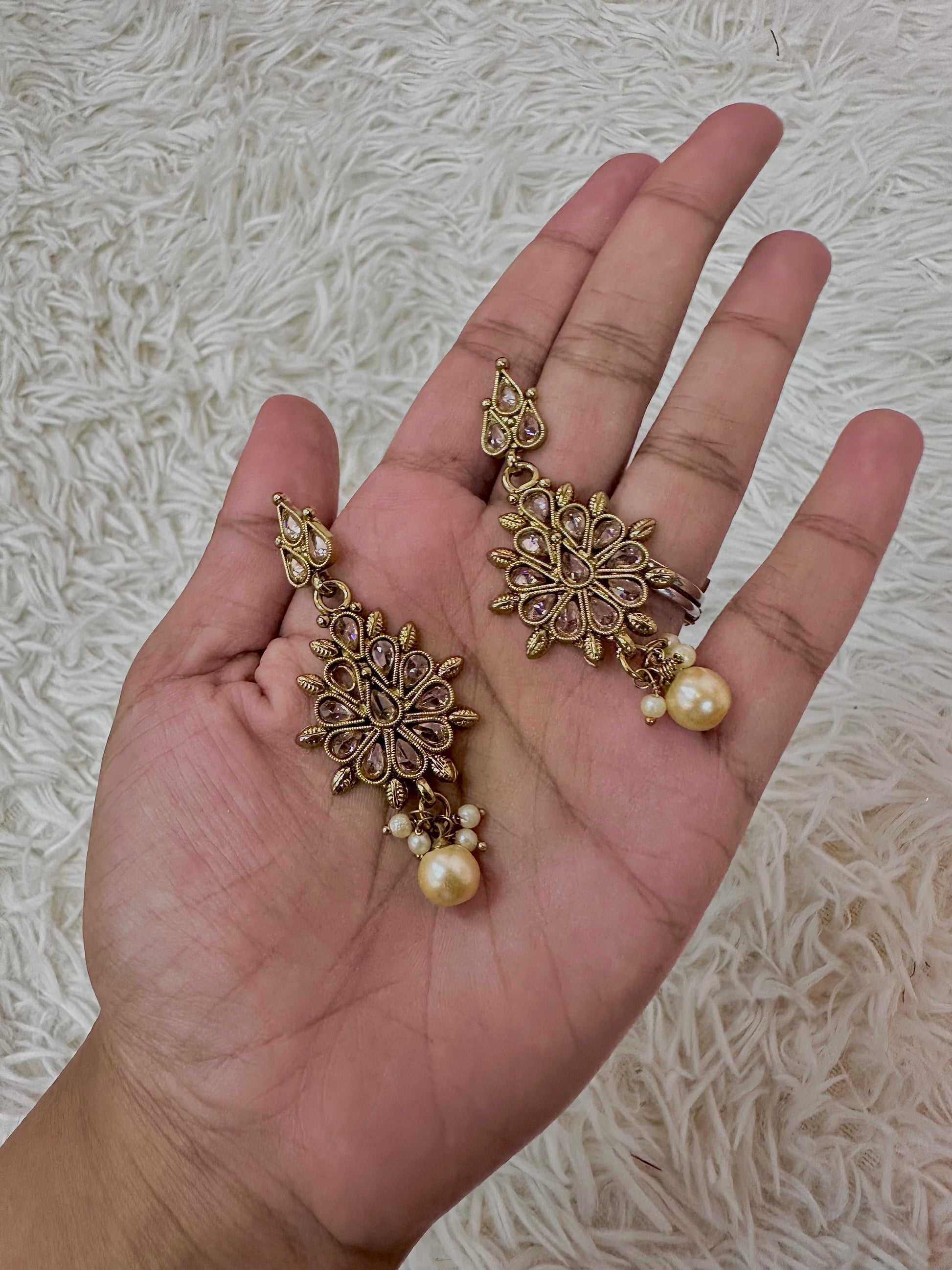 Embellishments: Cream pearls, off-white mini beads and original mehandi polished stones on molten brown metal material