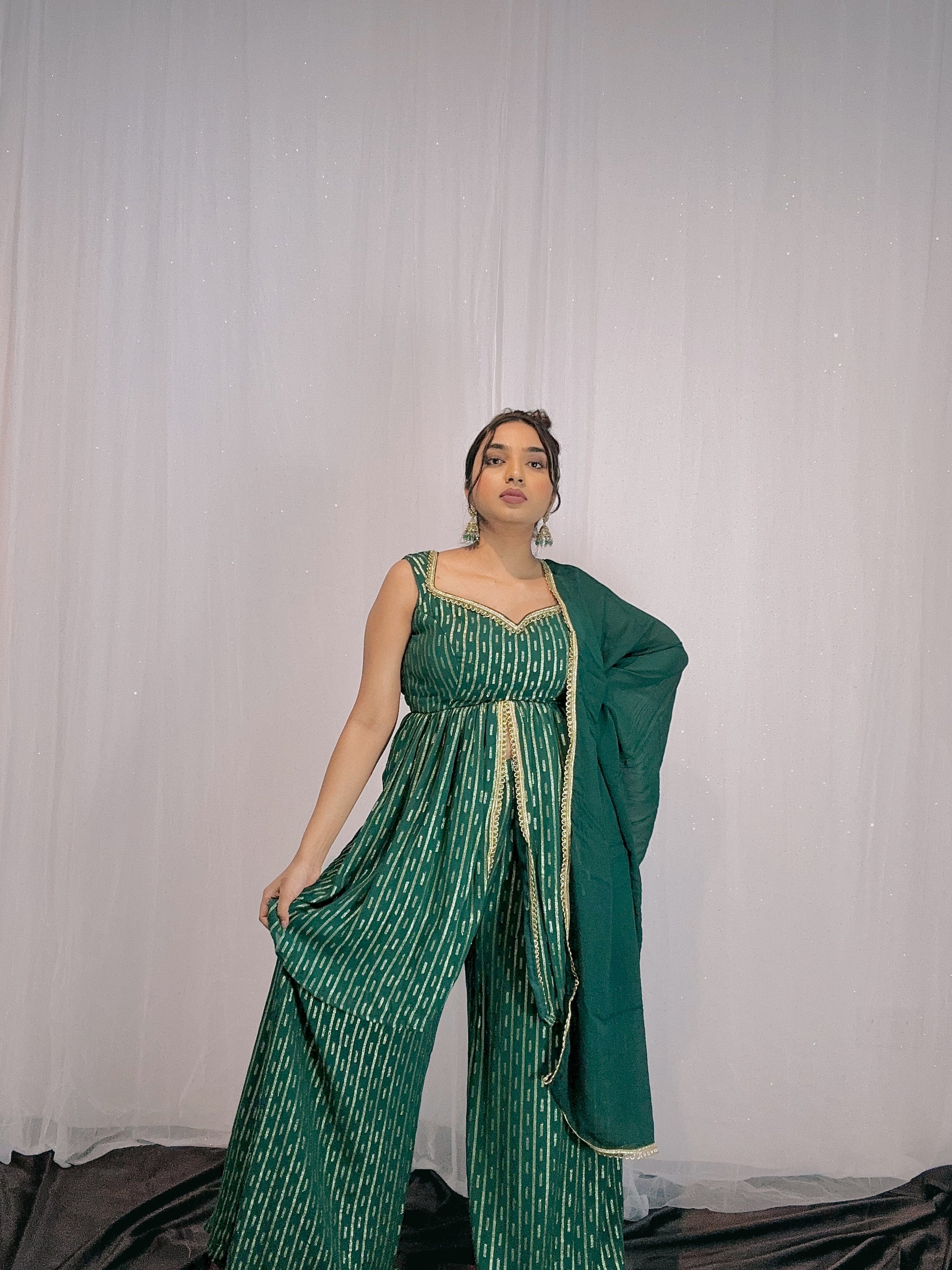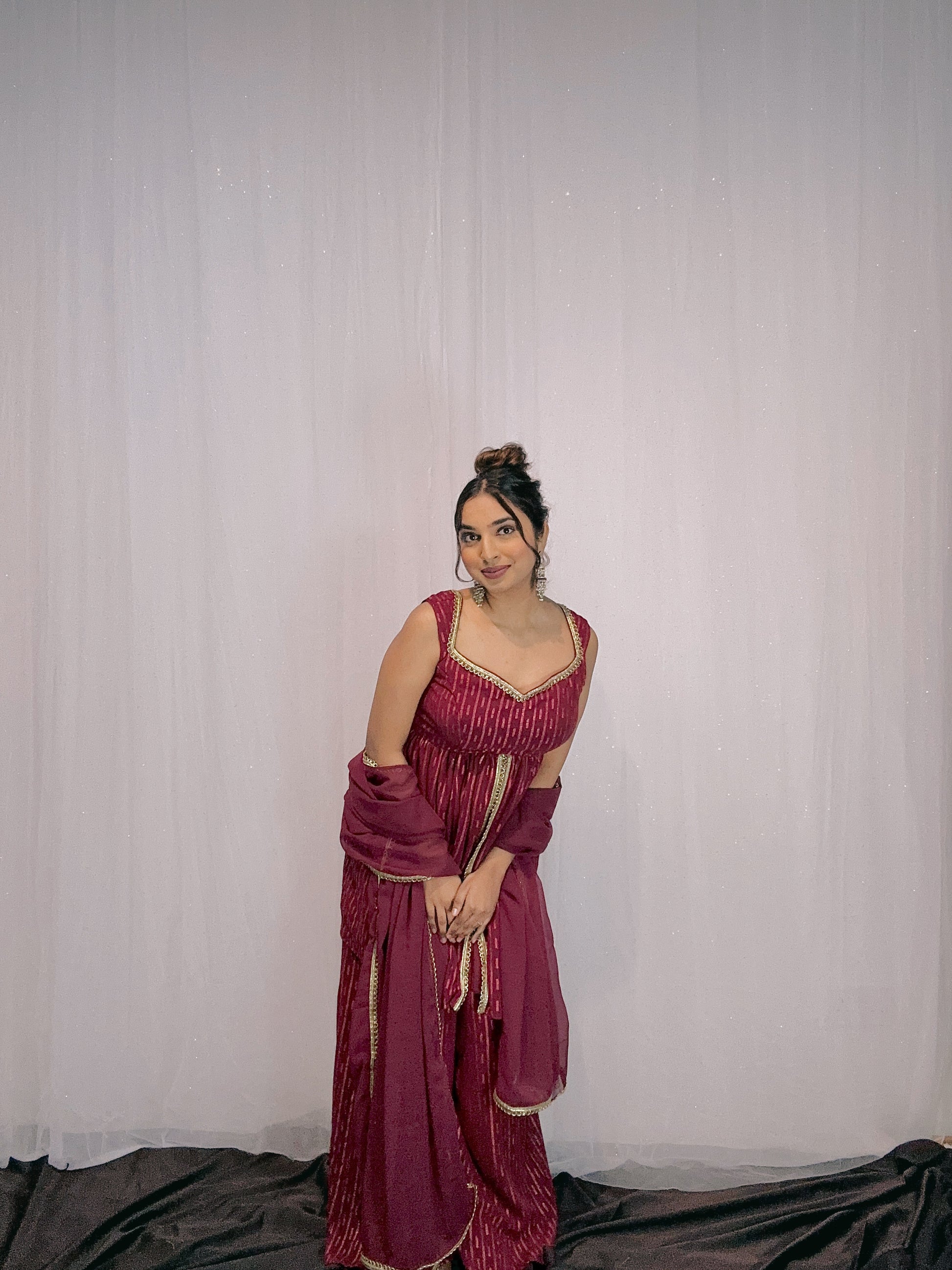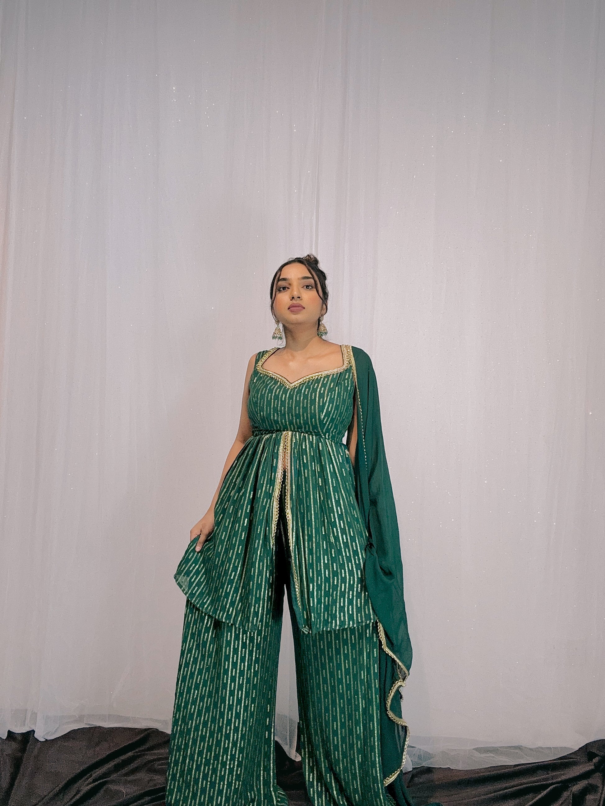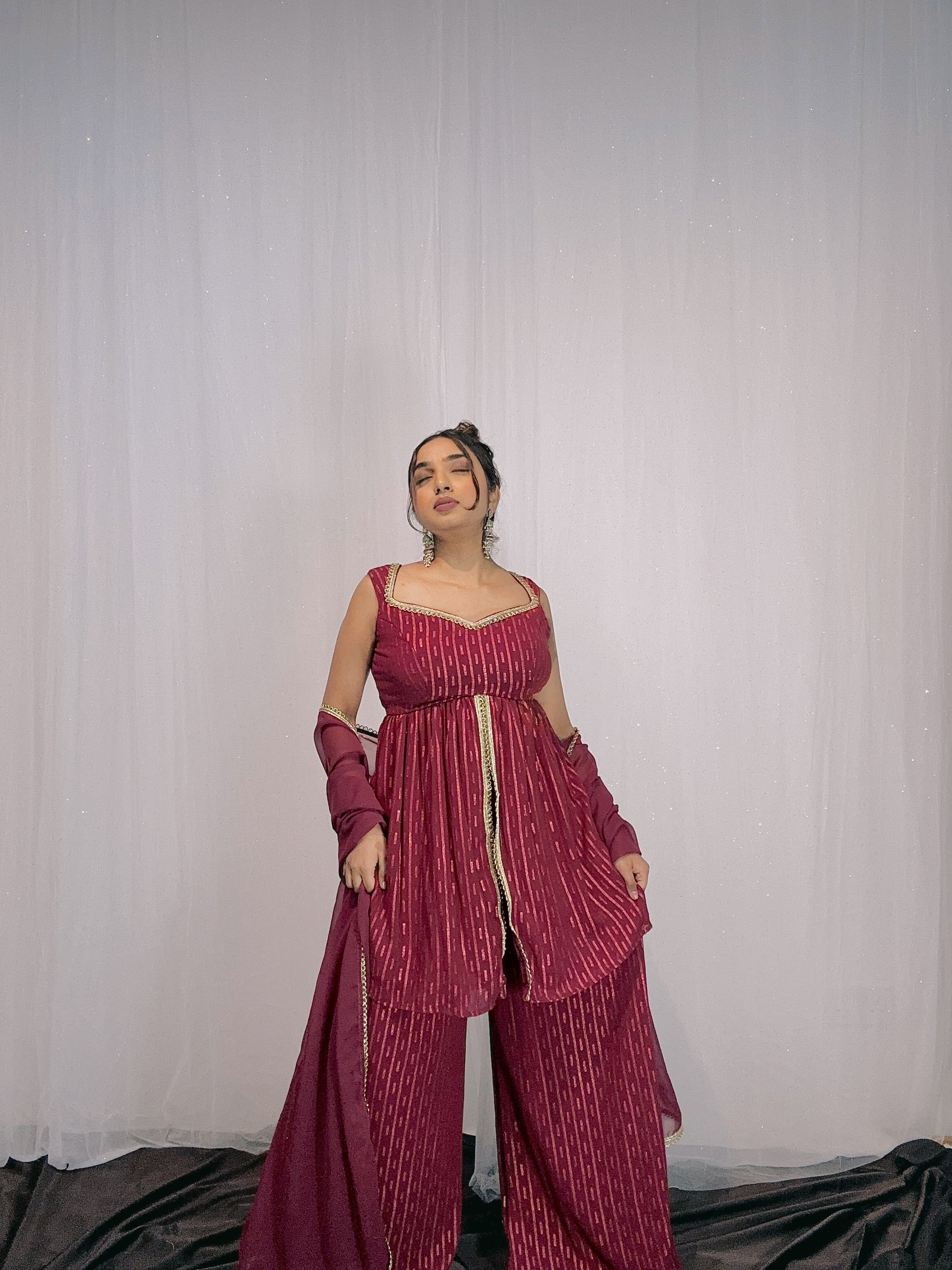 Embellishments: Champagne gold sequins on banaras material with champagne gold border, accompanied with a georgette material shawl embellished with champagne gold embroidery